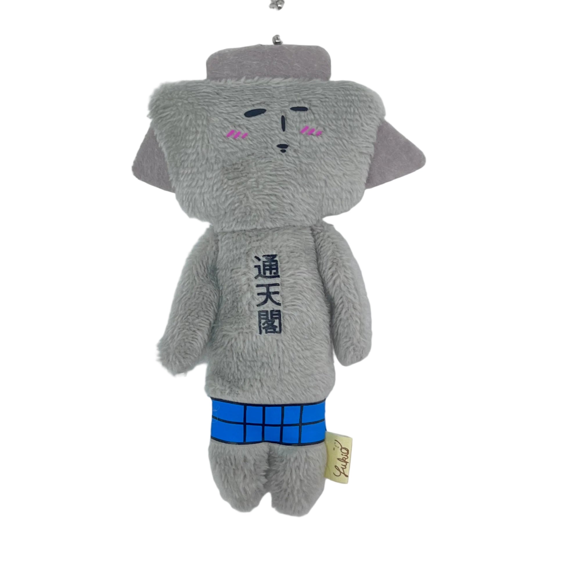 A landmark of Osaka, Tsutenkaku Tower features observation decks on either side of its spires at the top. The building's grey exterior is adorned with a blue checkered pattern along its midsection, symbolizing the illuminated decorations that light up Tsutenkaku at night.